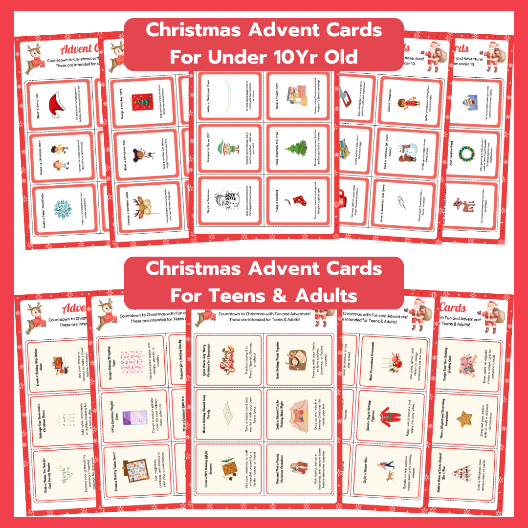 Transform the countdown to Christmas into a magical experience with our Advent Cards! For kids under 10, there are 30 cards filled with fun activities, sweet surprises, and festive challenges to keep them excited every day.